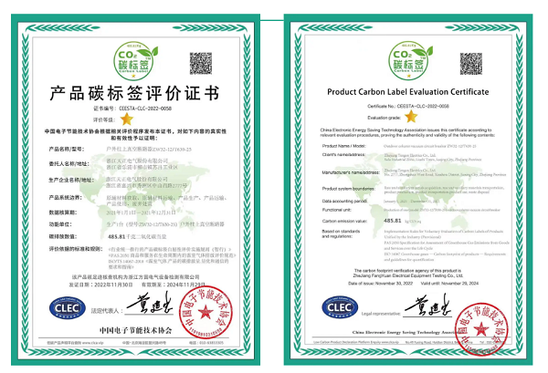 此次碳标签评价表明,金年会最新登录电气生产的户外柱上真空断路产品,在碳排放大数据方面按国际通行惯例推进,并具备一定的优势,对促进产品全供应链的温室气体减排,达成“双碳”目标具有积极作用。此外,金年会最新登录还获中国电子节能技术协会颁发的低碳产品供应商证书